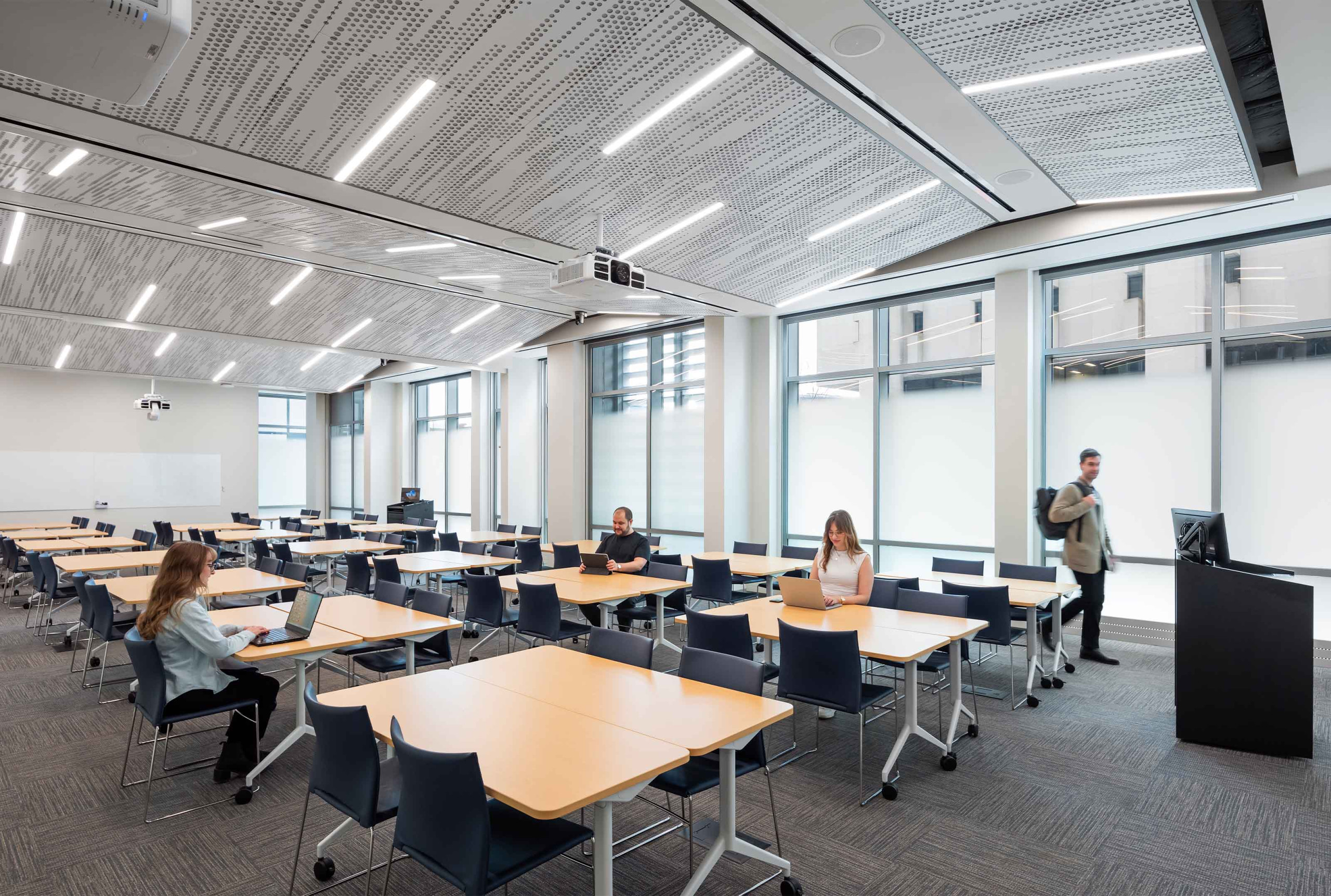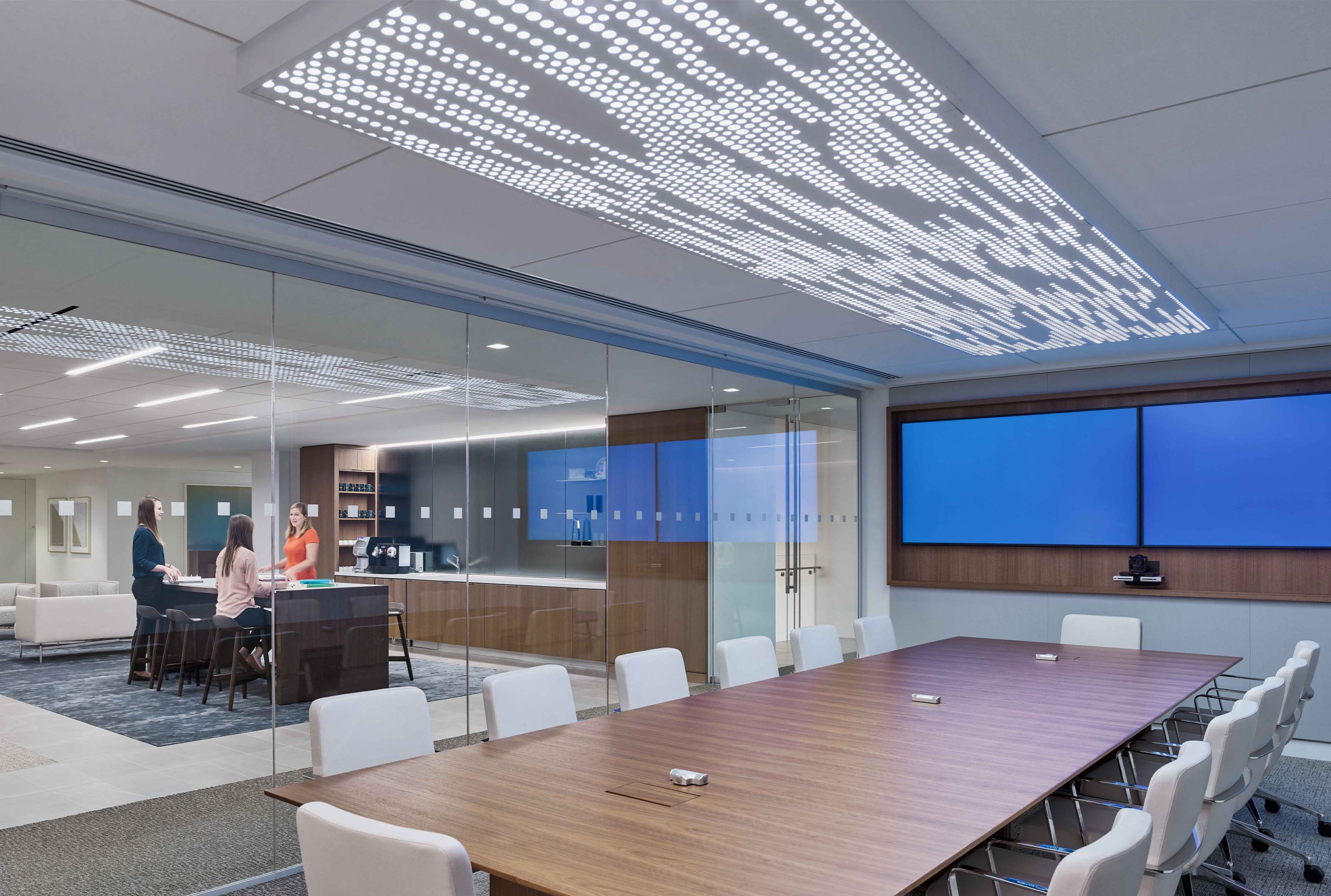 Trail powder-coated aluminum torsion spring panels feature a linear design of multi-sized circles, creating a flowing effect designed to evoke emotion. Each line of larger circles tapers off with smaller circles to create a trail you’ll want to follow, especially when paired with our integrated lighting backer. But if you don’t want to hear people following the trail, add our Soft Sound® backer and reduce excess noise.