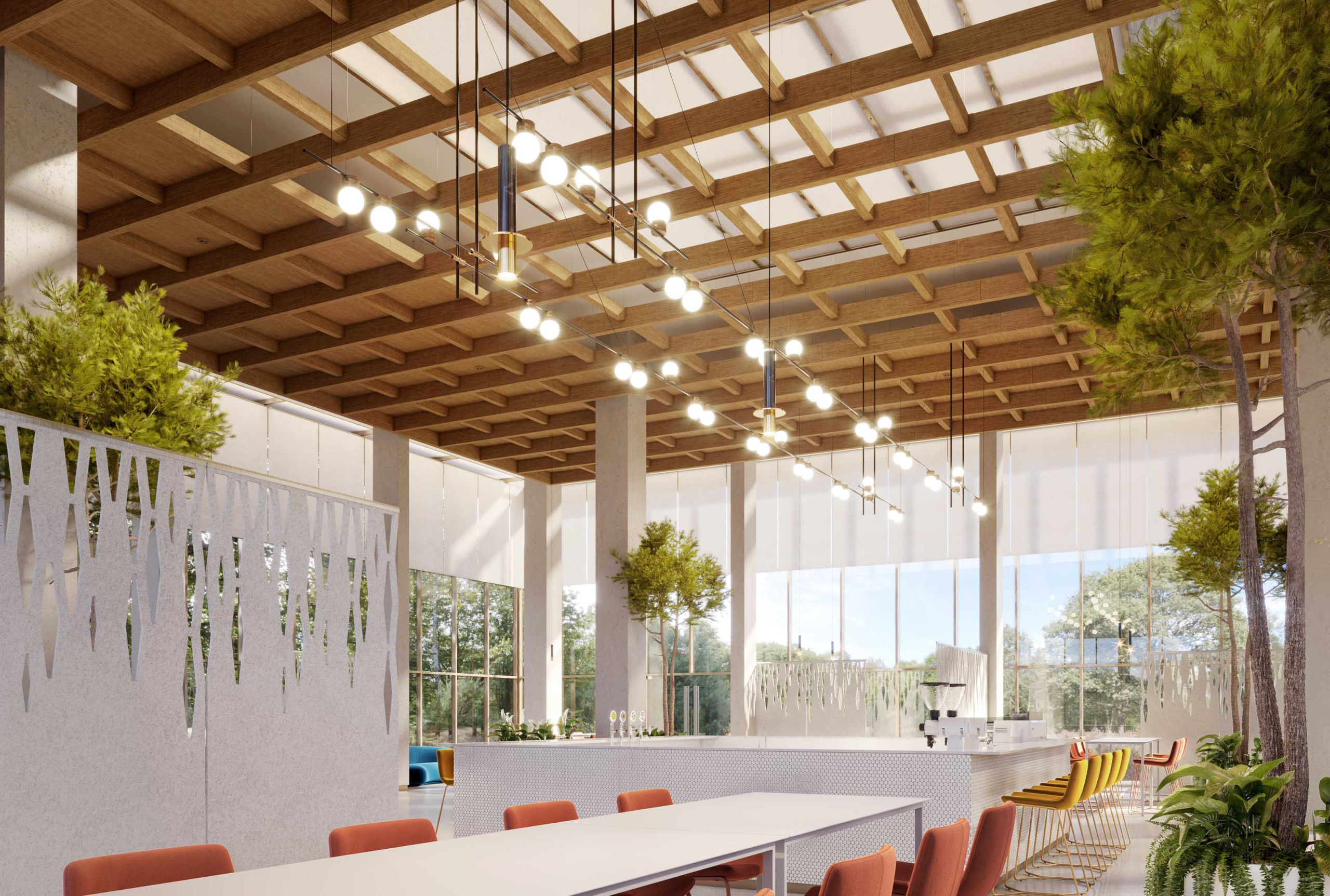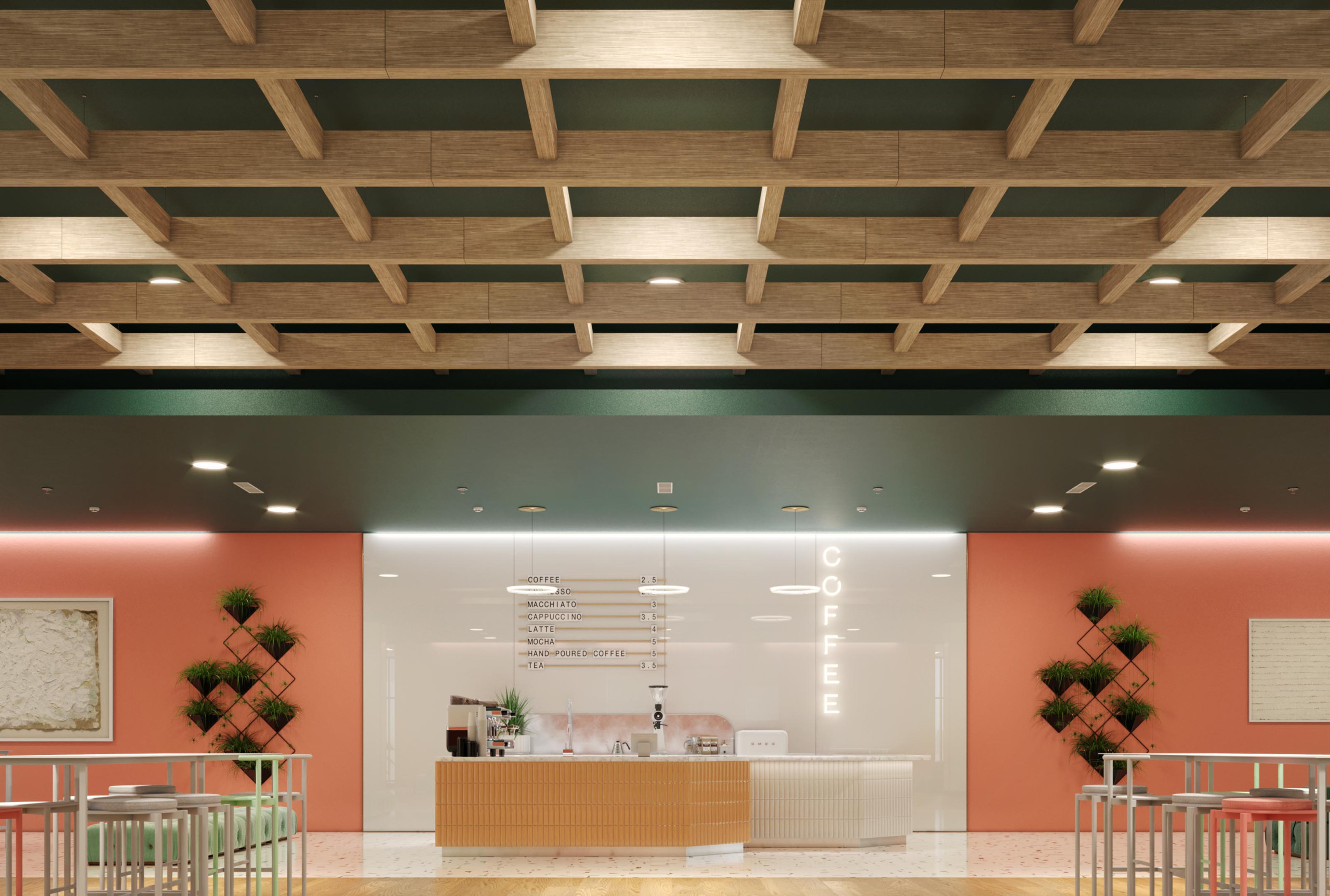 SoftSpan® 48A is a versatile ceiling baffle system that brings the look of closely gridded coffered ceilings or timber trellises to spaces without the weight, while enhancing acoustics and reducing the impact of noise. Add Soft Sound® coffer panels to create an enclosed look and further enhance the acoustics of your space. Fully compatible with SoundBar® acoustic baffle and lighting system.