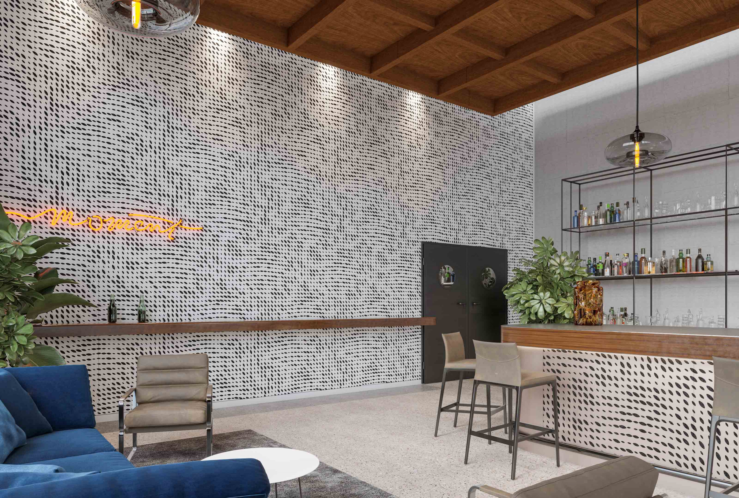 Vapor® Breeze’s 2’x4′ powder-coated aluminum torsion spring panels create an organic feel through organic natural inspirations echoing the flurry of air and the murmuration of butterflies. The pattern continues seamlessly from panel to panel, and with the option of Soft Sound® backers, you can evoke nature while reducing the amount of ambient noise. For added dynamic effect, try our integrated backlighting to illuminate your space and form a design that truly shines