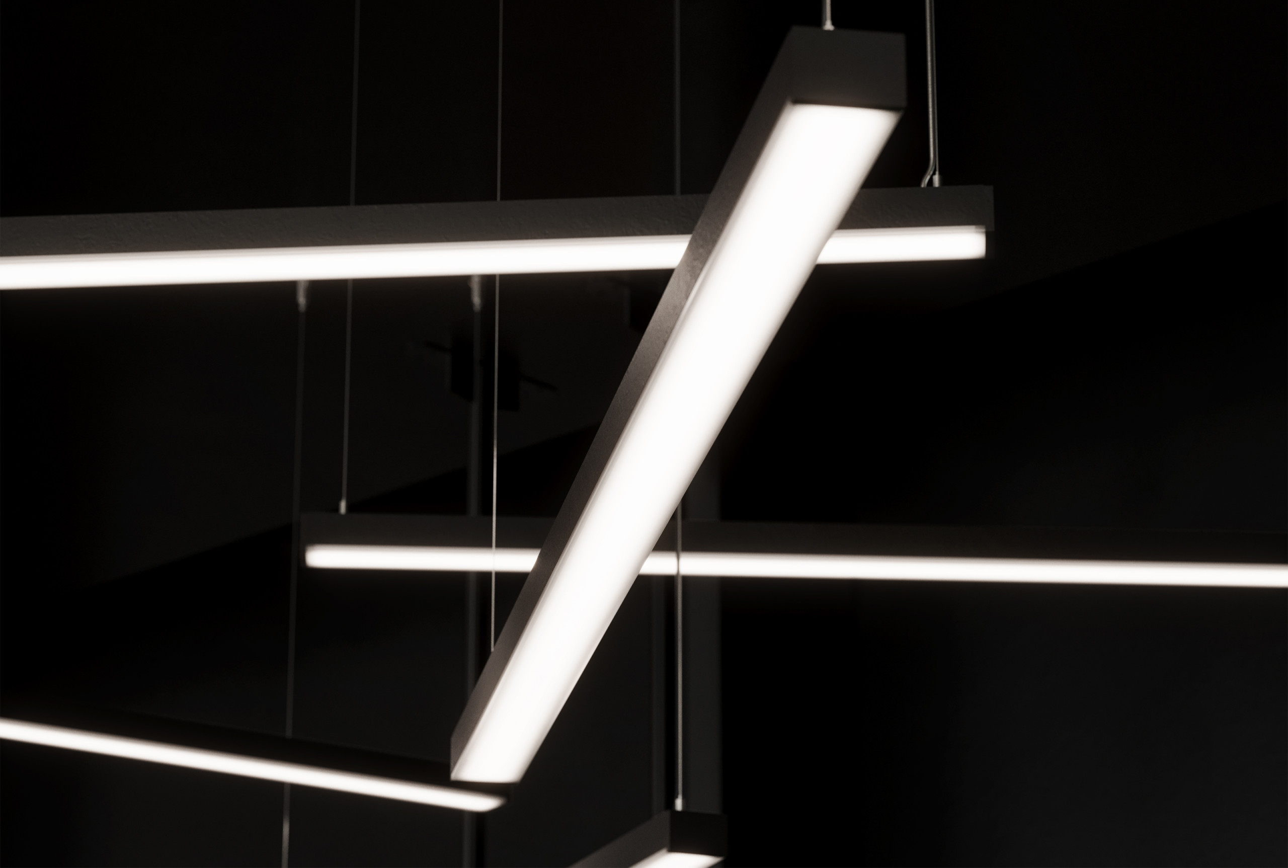 LumAngle™ 180 provides a straightforward, linear way to light up your next project. Offered in 2′ – 8′ configurations, this pendant can be installed in tandem with various Arktura architectural systems. For a patterned effect, arrange multiple LumAngle™ pendants in a linear array to create a sense of flow and direction, perfect for hallways, offices, or any large spaces.