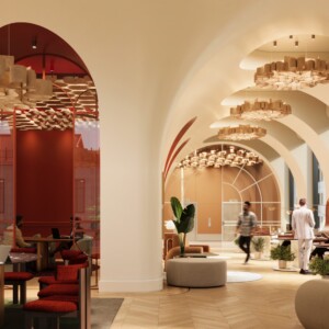 Tapestra™ Lace offers linear organization to this family of organic, free-flowing structures and a captivating array of cone-like forms creating a dynamic, textured ceiling surface. The three-dimensional geometric design, with its intriguing play of light and shadow through subtle openings, enhances visual interest. Install multiple modules to build an acoustic array in any interior space.