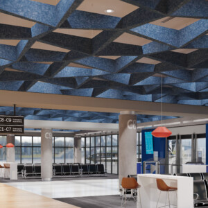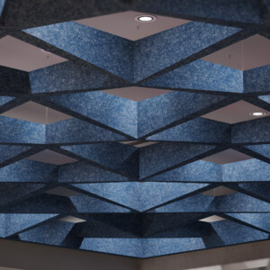 Introducing the latest angle in acoustic design, our new expansion to the SoftSpan® ceiling system offers an unparalleled form factor and acoustic performance. Building on the original’s success, this system of interconnected parts provides a truly integrated and streamlined solution. Crafted from our 12mm Soft Sound® material, these new tapered offerings are available in three sizes: 24, 48, and 96. SoftSpan® Taper’s unique shape is designed to connect with traditional SoftSpan® systems, thanks to transition beams connecting the tapered baffles to the standard module.