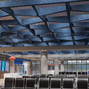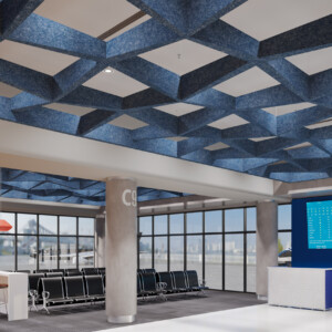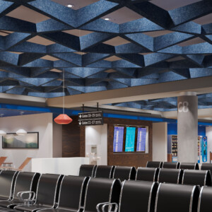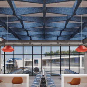 SoftSpan® Taper 48 is designed with an emphasis on acoustic design excellence. This angled ceiling system utilizes our 12mm Soft Sound® material to reduce noise while providing an eye-catching form factor. Its unique tapered design allows for seamless connection to existing SoftSpan® and SoundBar® systems, creating a unified look throughout your space. Enhance acoustics with optional coffers, adding an extra dimension to your ceiling design. With a cable-hung, trimmable installation process, achieving the perfect fit has never been easier.