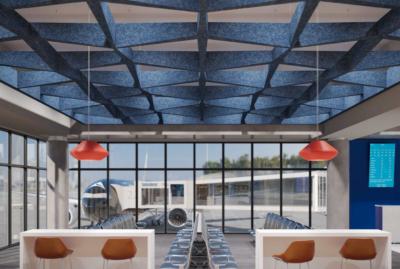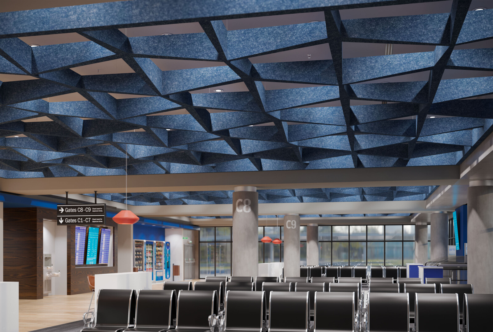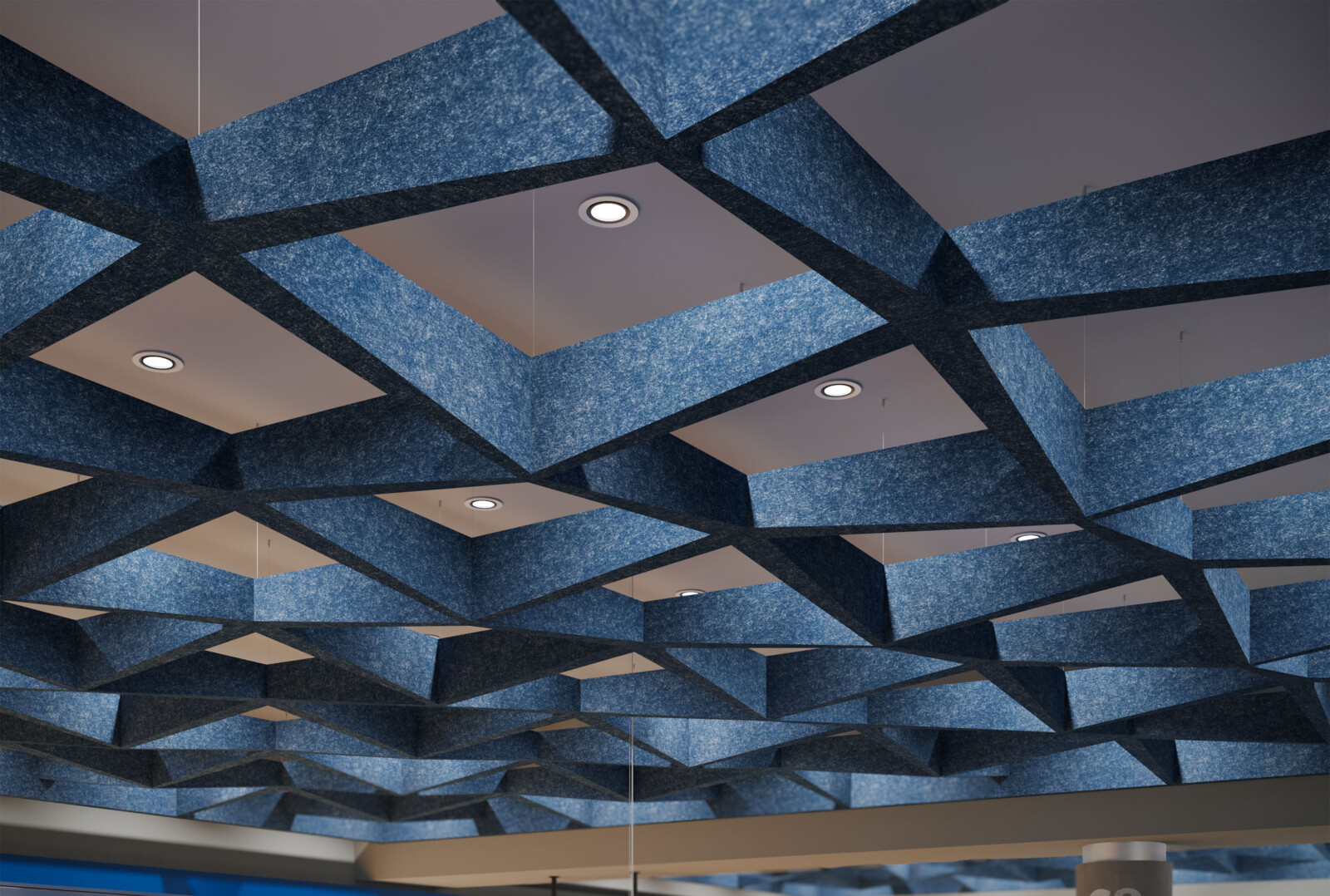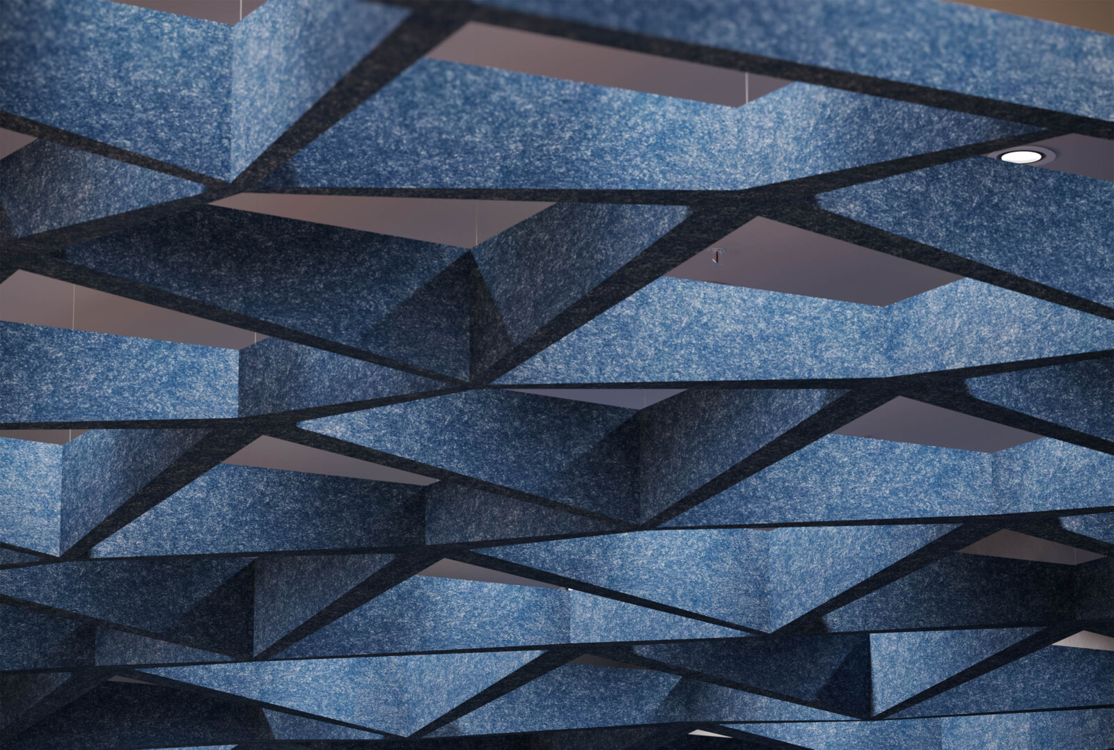Introducing the latest angle in acoustic design, our new expansion to the SoftSpan® ceiling system offers an unparalleled form factor and acoustic performance. Building on the original's success, this system of interconnected parts provides a truly integrated and streamlined solution. Crafted from our 12mm Soft Sound® material, these new tapered offerings are available in three sizes: 24, 48, and 96. SoftSpan® Taper’s unique shape is designed to connect with traditional SoftSpan® systems, thanks to transition beams connecting the tapered baffles to the standard module. Get A Quote