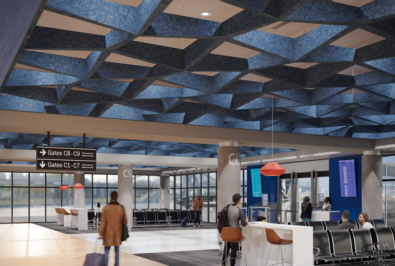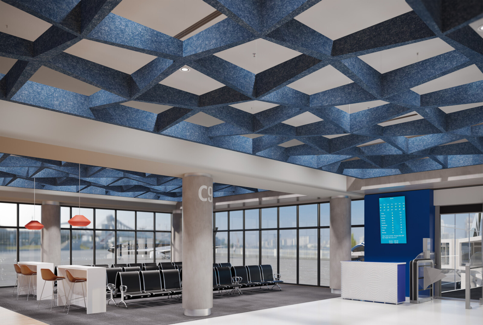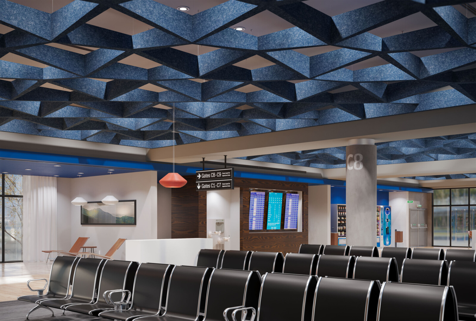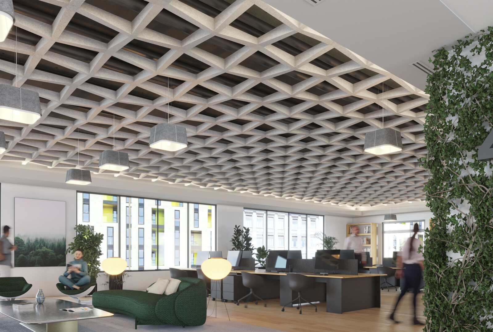 Introducing the latest angle in acoustic design, our new expansion to the SoftSpan® ceiling system offers an unparalleled form factor and acoustic performance. Building on the original's success, this system of interconnected parts provides a truly integrated and streamlined solution. Crafted from our 12mm Soft Sound® material, these new tapered offerings are available in three sizes: 24, 48, and 96. SoftSpan® Taper’s unique shape is designed to connect with traditional SoftSpan® systems, thanks to transition beams connecting the tapered baffles to the standard module. Get A Quote